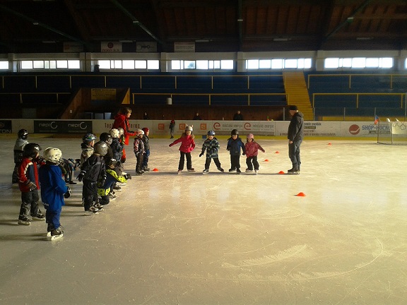 Právě probíhající zimní olympijské hry v Soči byly námětem pro učitelky z MŠ Bruslička uspořádat pro děti jejich malou olympiádu. V průběhu lekce bruslení, na které mateřská školka dochází jednou týdně po celou hokejovou sezónu, si malí sportovci vyzkoušeli prvky krasobruslení, někteří si zahráli lední hokej a všichni své bruslařské dovednosti poměřili v rychlobruslení.